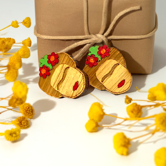 Bamboo Frida Stud Earrings with Red Flowers