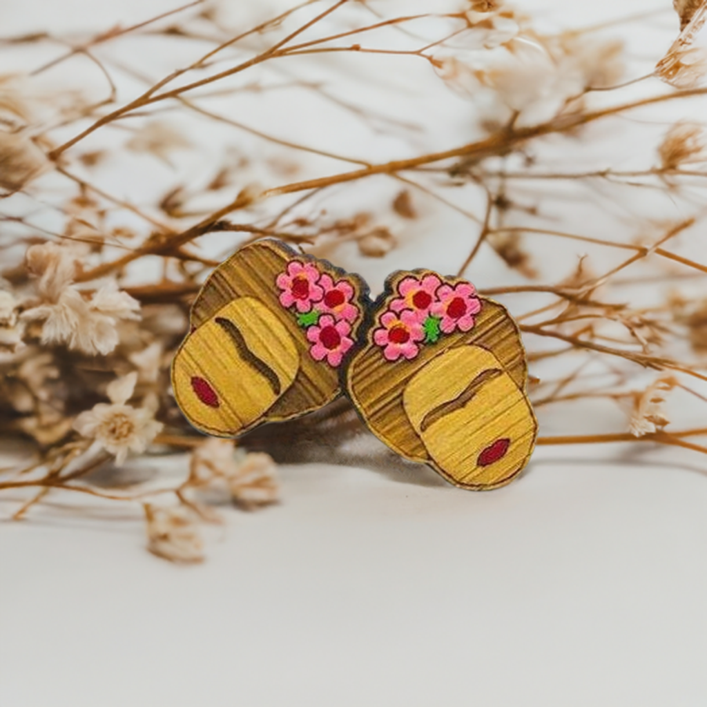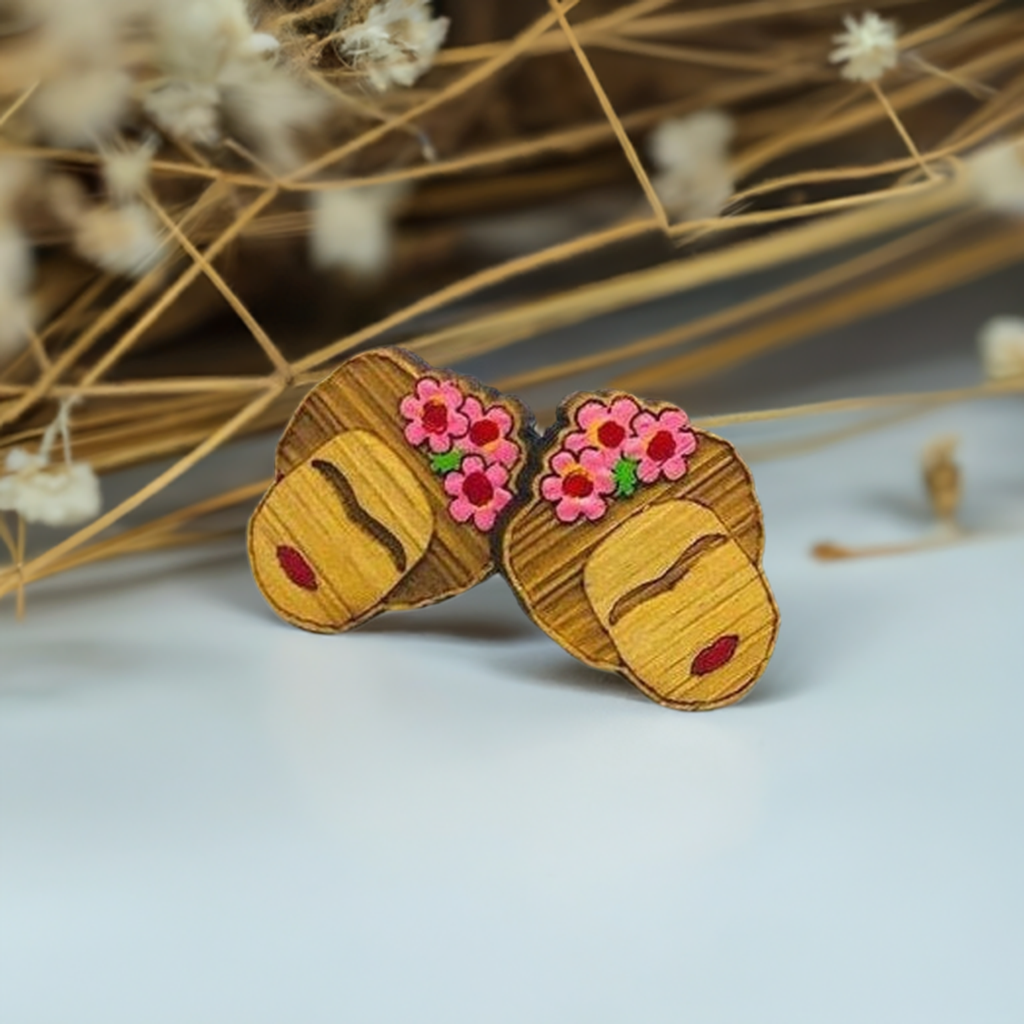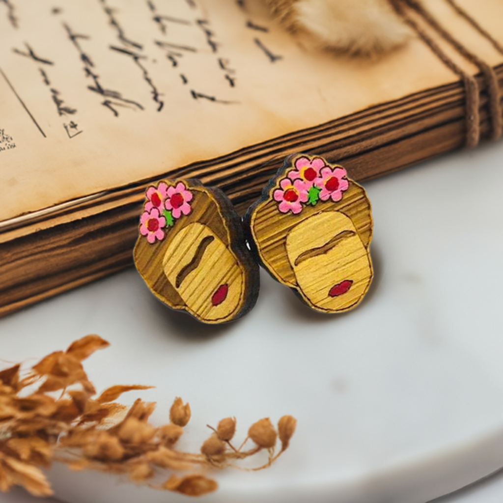 Exude a daring attitude with these hand painted floral pink bamboo Frida Earrings. Embrace the beauty of nature with these unique wooden earrings, handcrafted to perfection. Each stud is a bold statement, reflecting the boldness in your personality. Own these Mexican-inspired pieces of art and add an element of adventure to your wardrobe. Don't resist the temptation to keep these mini Frida earrings for yourself or surprise a loved one with a perfect gift!