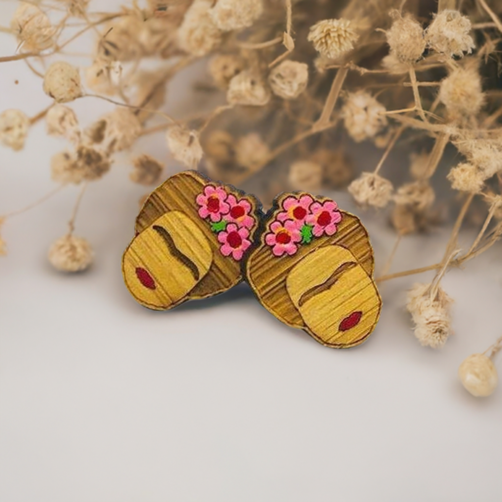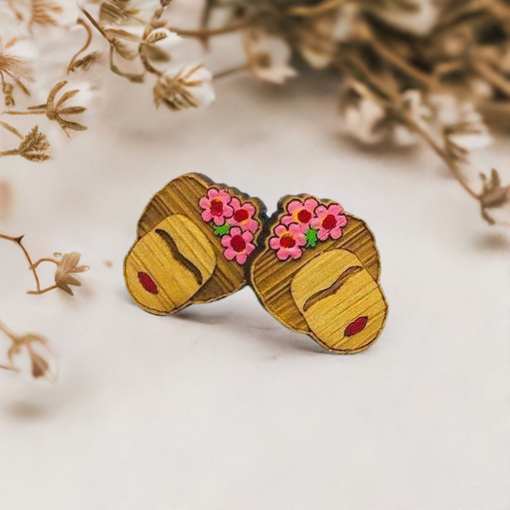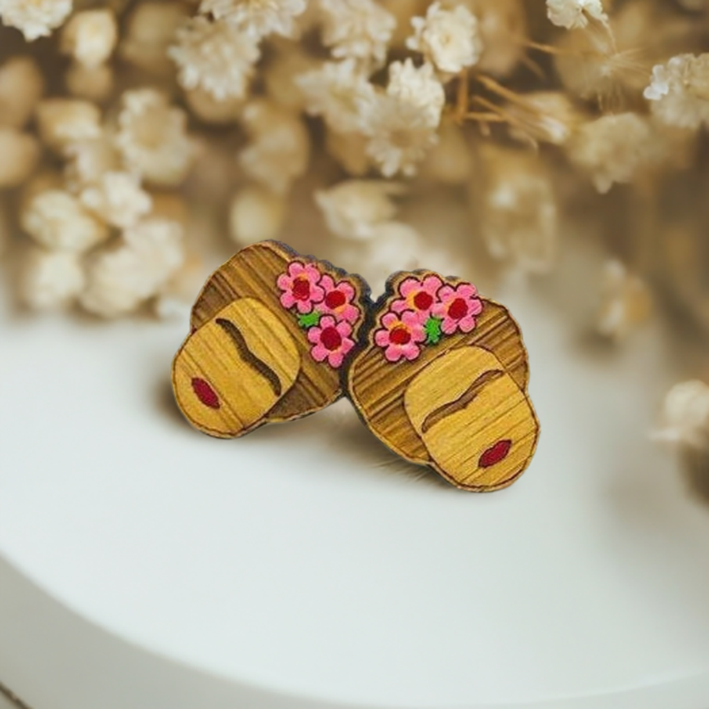 Exude a daring attitude with these hand painted floral pink bamboo Frida Earrings. Embrace the beauty of nature with these unique wooden earrings, handcrafted to perfection. Each stud is a bold statement, reflecting the boldness in your personality. Own these Mexican-inspired pieces of art and add an element of adventure to your wardrobe. Don't resist the temptation to keep these mini Frida earrings for yourself or surprise a loved one with a perfect gift!