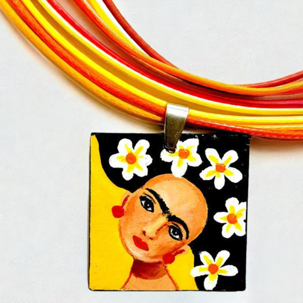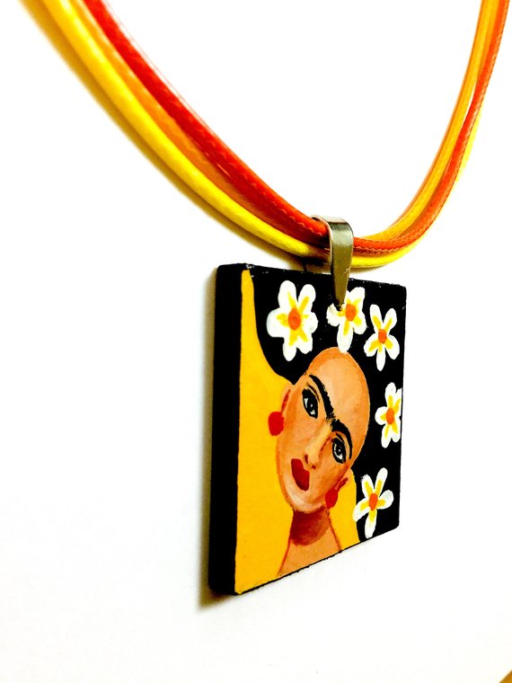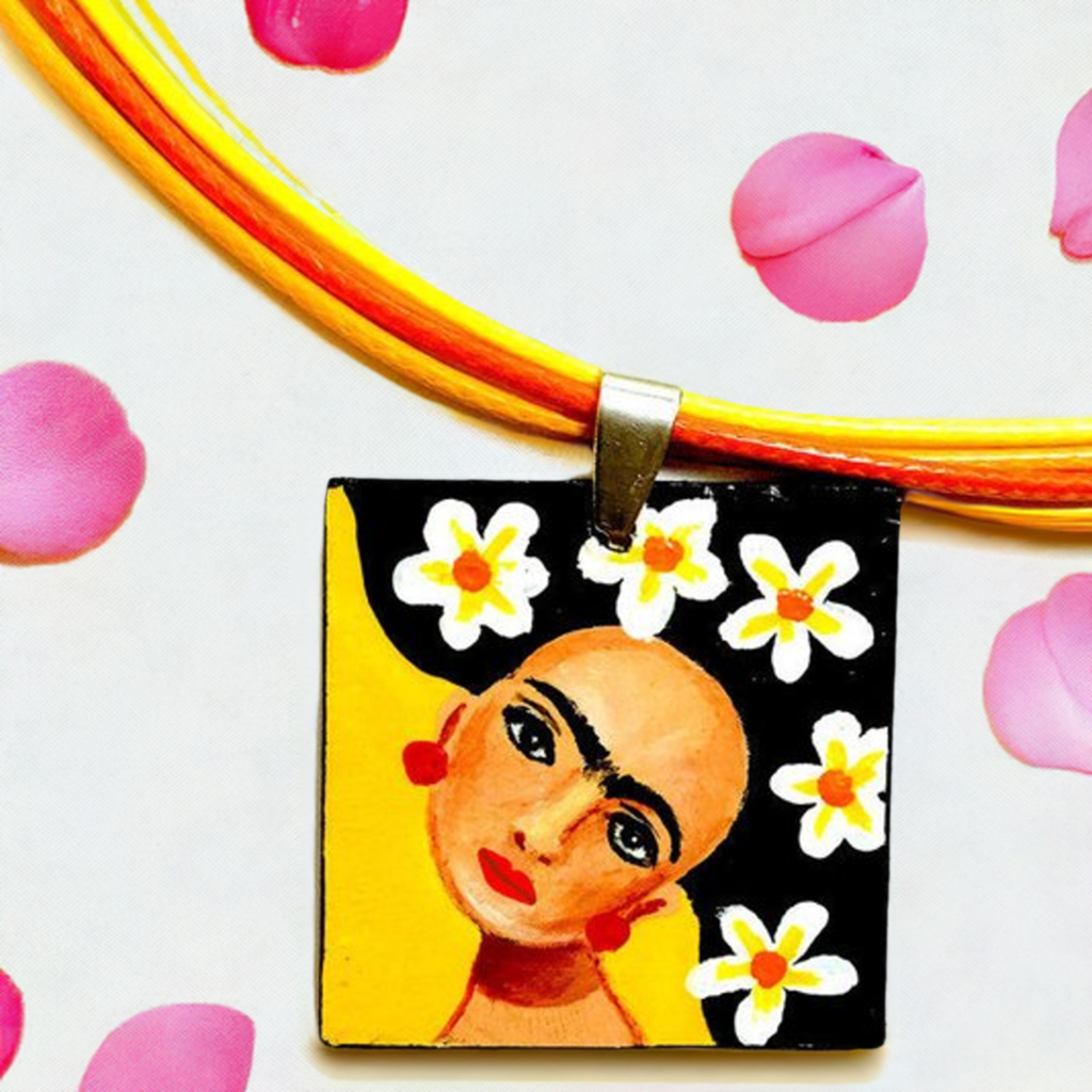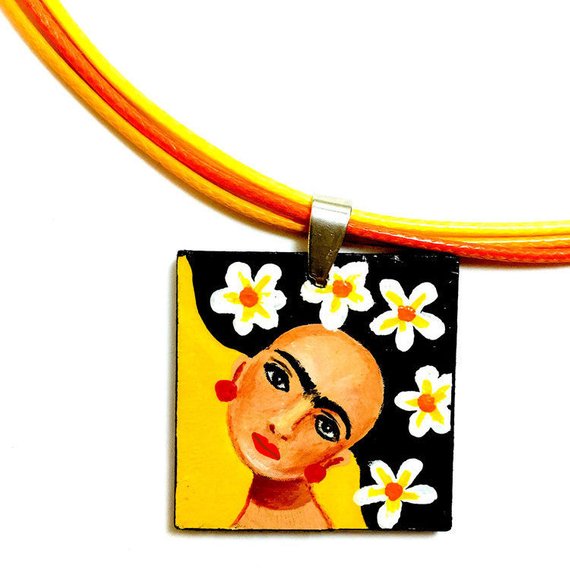 Our passion and dedication went into crafting a truly extraordinary piece for our shop, Fridamaniacs. We strived to produce something truly one-of-a-kind, not commonly found elsewhere. This vibrant, hand-painted Frida Kahlo pendant is a stunning work of art. Made with high-quality acrylic paint and sealed with a protective gloss coat for long-lasting durability. Lightweight and completely unique, it makes for the perfect gift for that special someone.