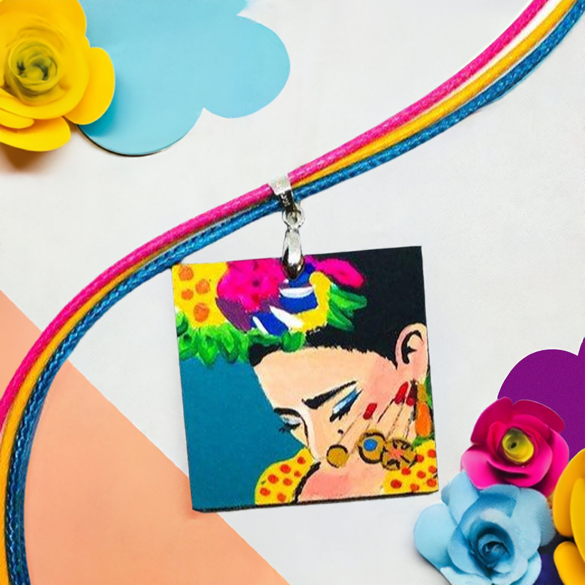 At Fridamaniacs, we pour our passion and creativity into every single piece. Our hand painted Frida Kahlo pendant is a truly one-of-a-kind masterpiece, made with high quality acrylic paint and protected with a special gloss coat for long-lasting durability. This unique accessory is not something you can find just anywhere, making it the perfect gift for that special someone.