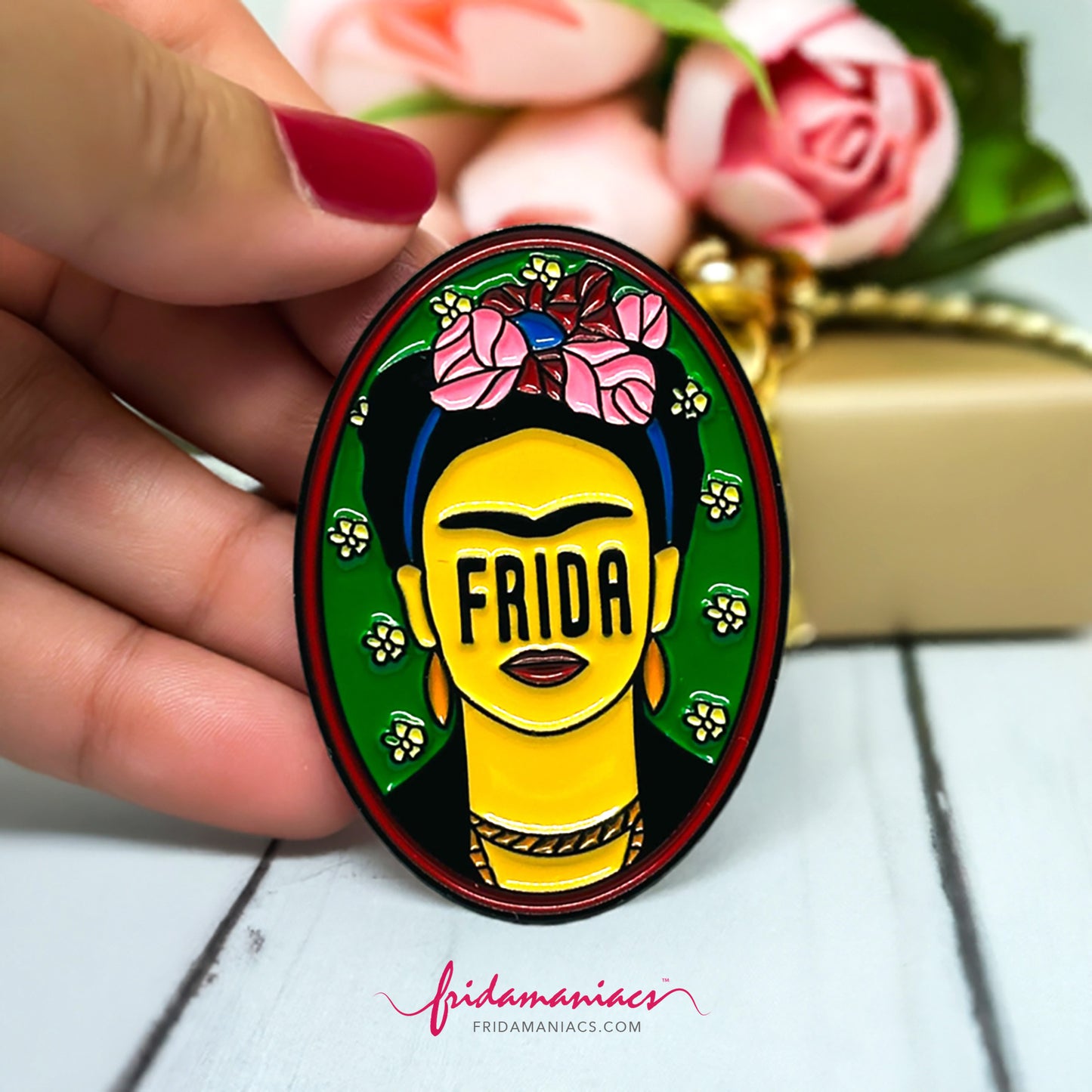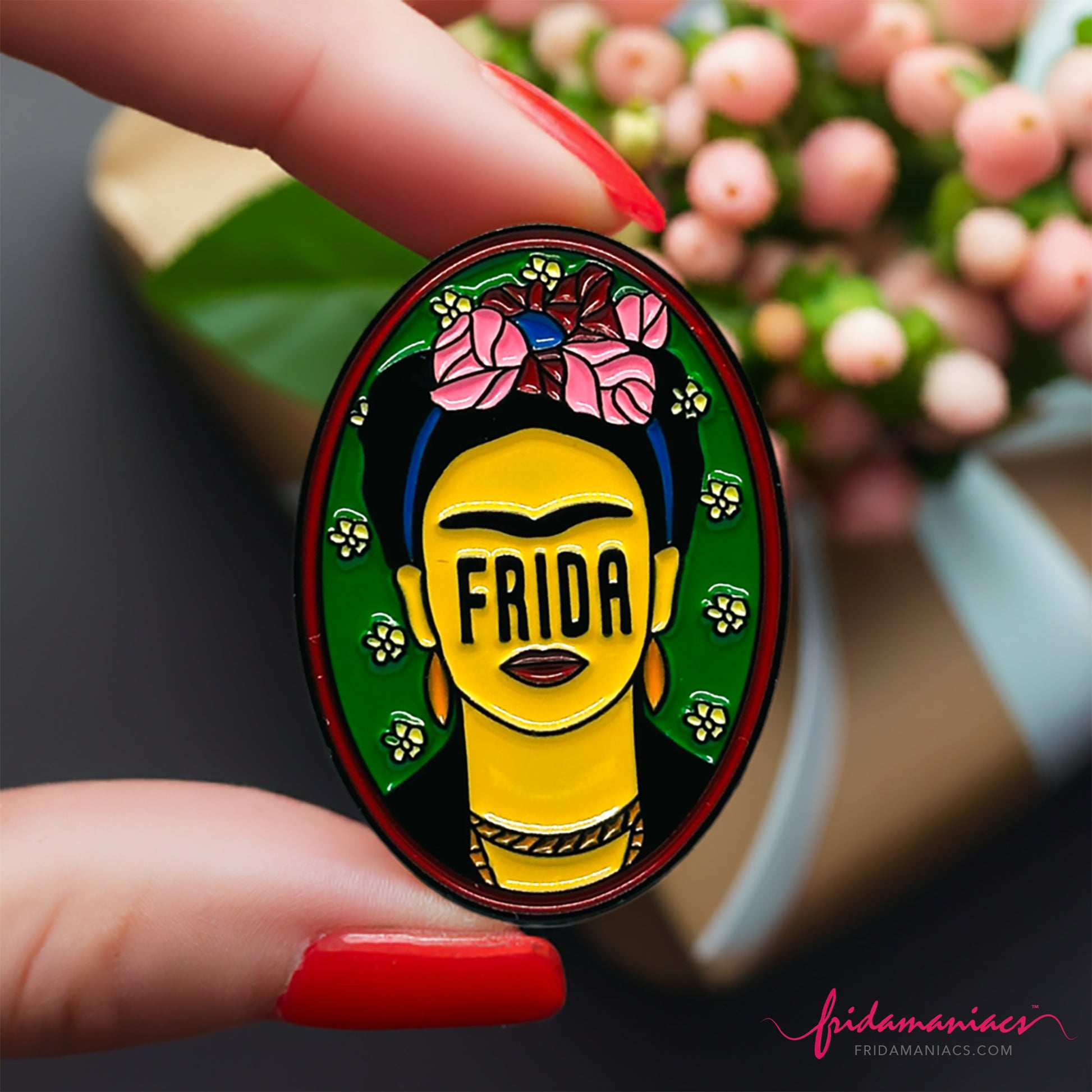 Add some flair to your fashion game with our stunning FRIDA Floral Enamel Pin! Perfect for all Fridamaniacs, this pin is a gorgeous representation of Mexican artist icon Frida Kahlo. Use it as an accessory to jazz up your backpack, jacket, hat, or anything else you desire. Show off your love for Frida and add a touch of bohemian folk art to your collection. Get yours today and become part of the Frida-inspired fashion revolution!