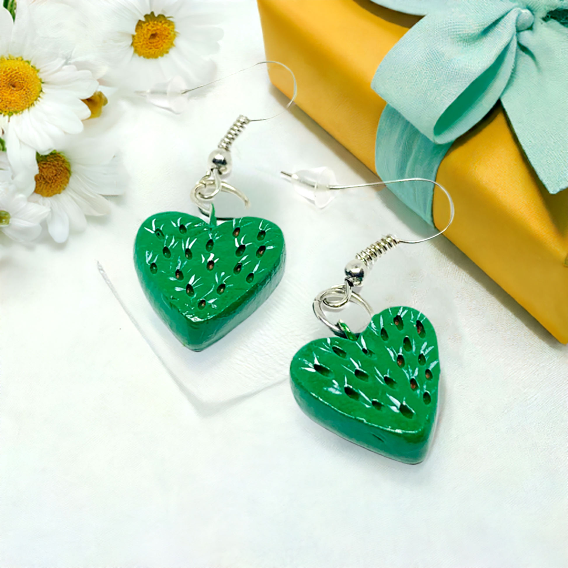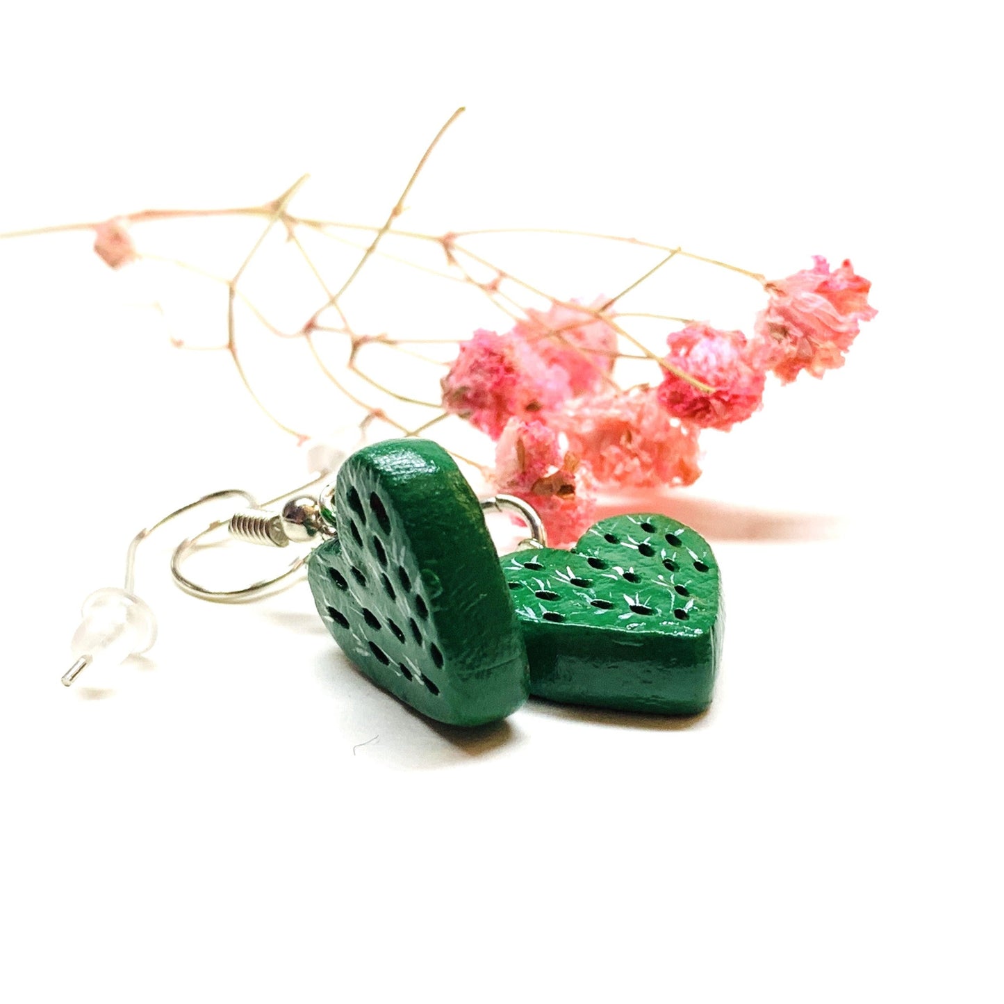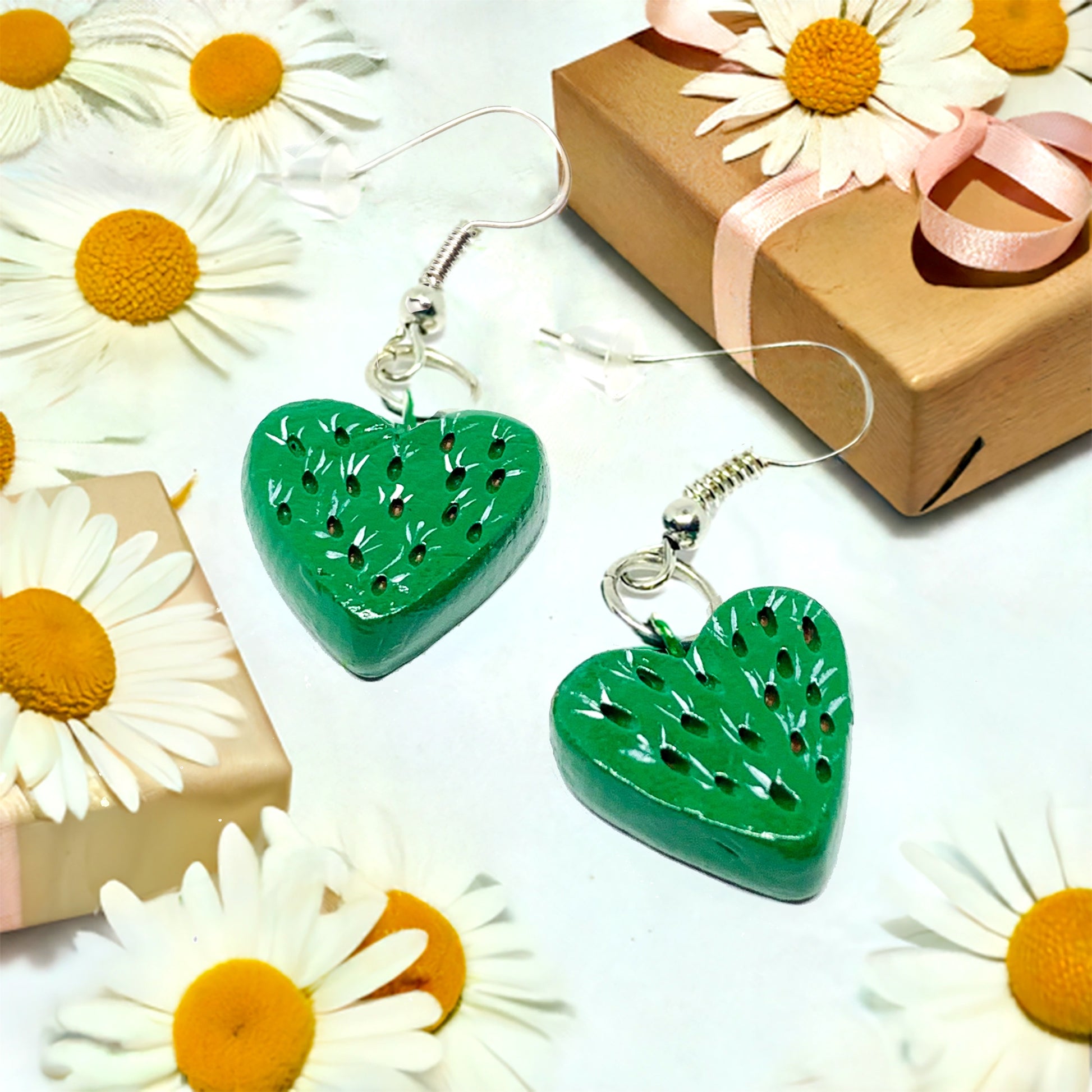 Heart Cactus Clay Earrings- Mexican Carved Jewelry