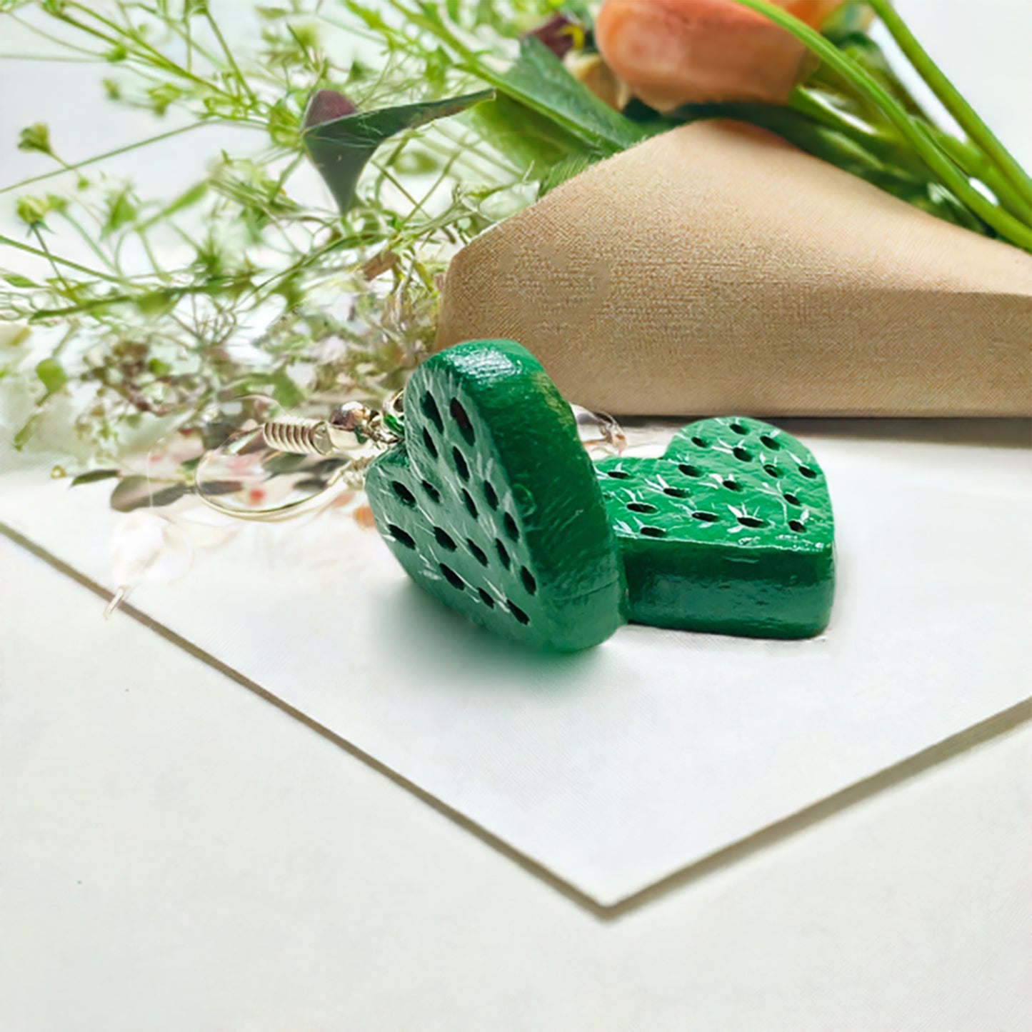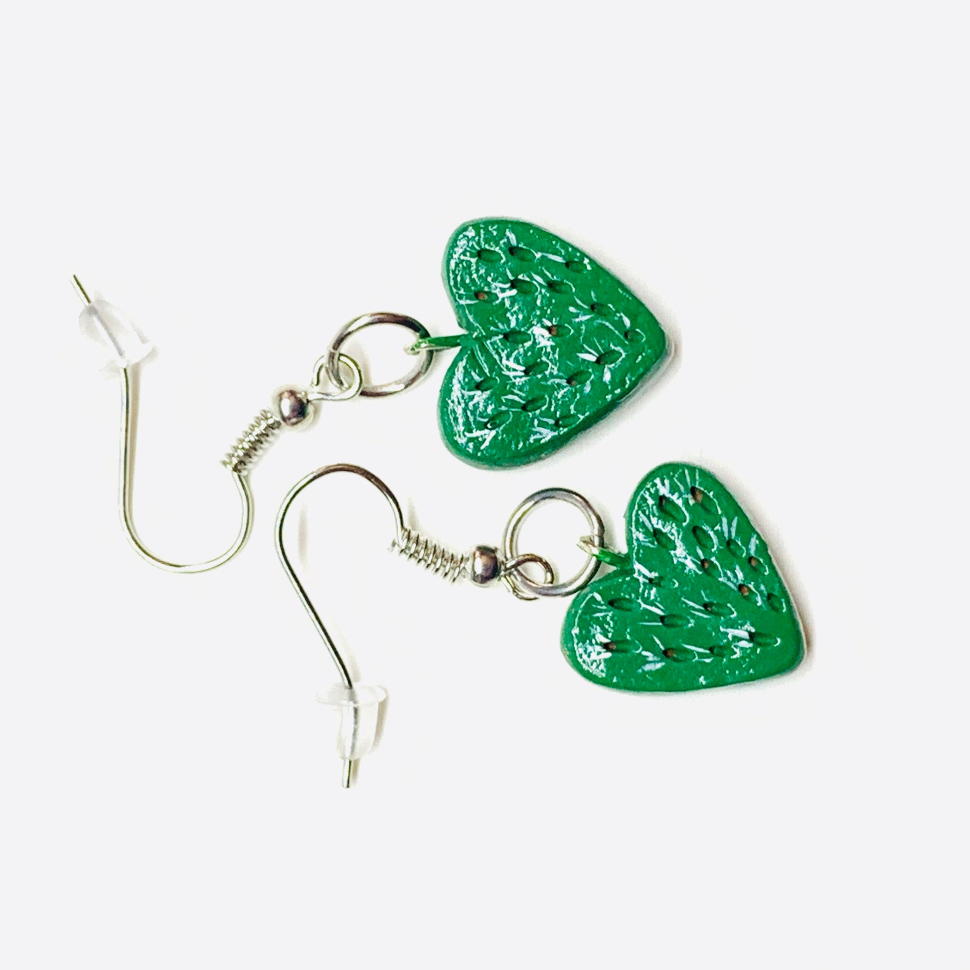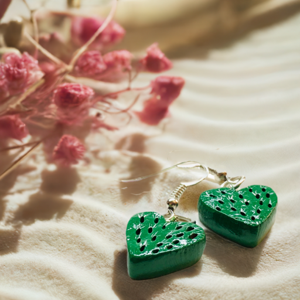 Heart Cactus Clay Earrings- Mexican Carved Jewelry