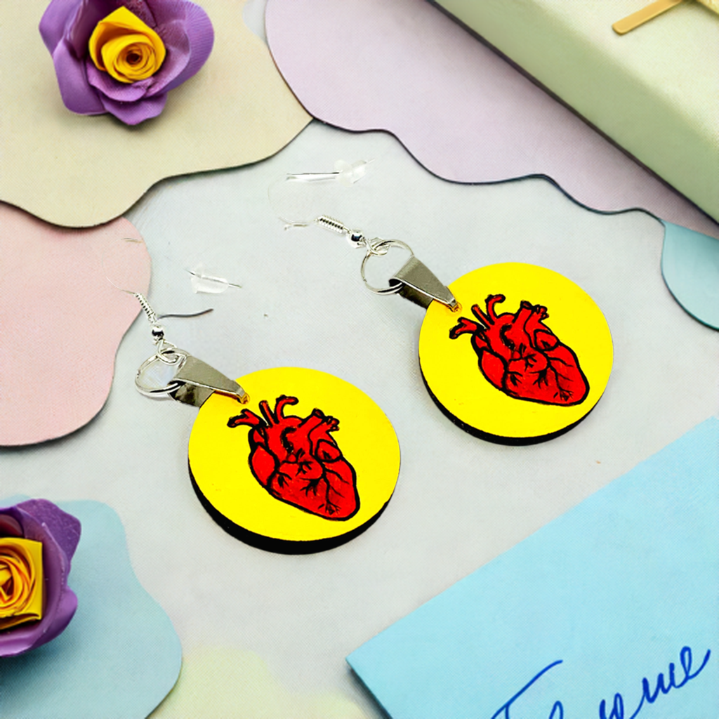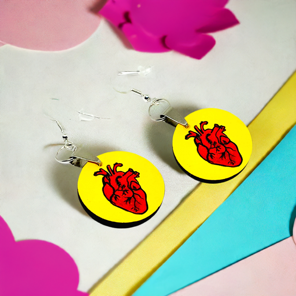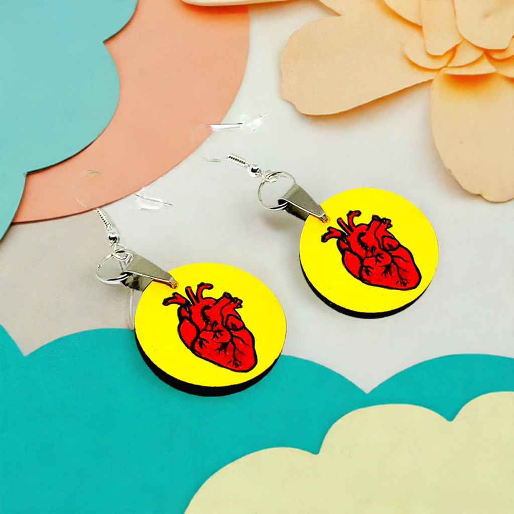 Loteria "El Corazón" Heart Earrings. Mexican Loteria Inspired Art to Wear. Artisan Designed Hand Painted and Handcrafted Wooden Earrings. Folk Art Mexico. Mexican Jewelry LoteriArt™ Aretes Mujer.