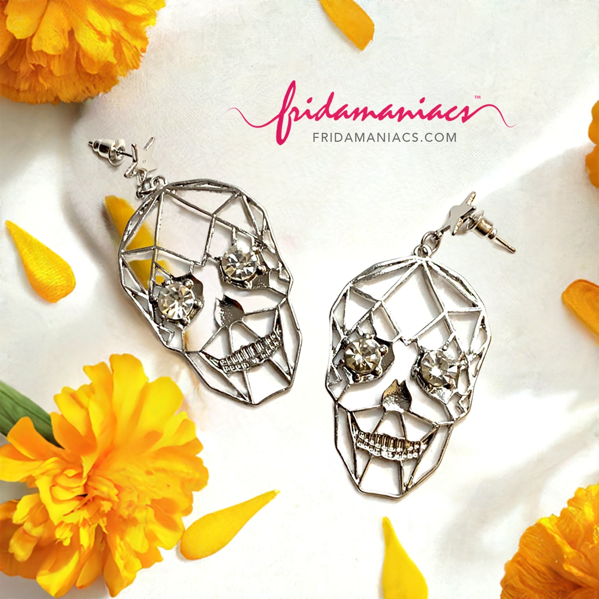 Swinging-Sparkling Silver Hollow Skull Earrings