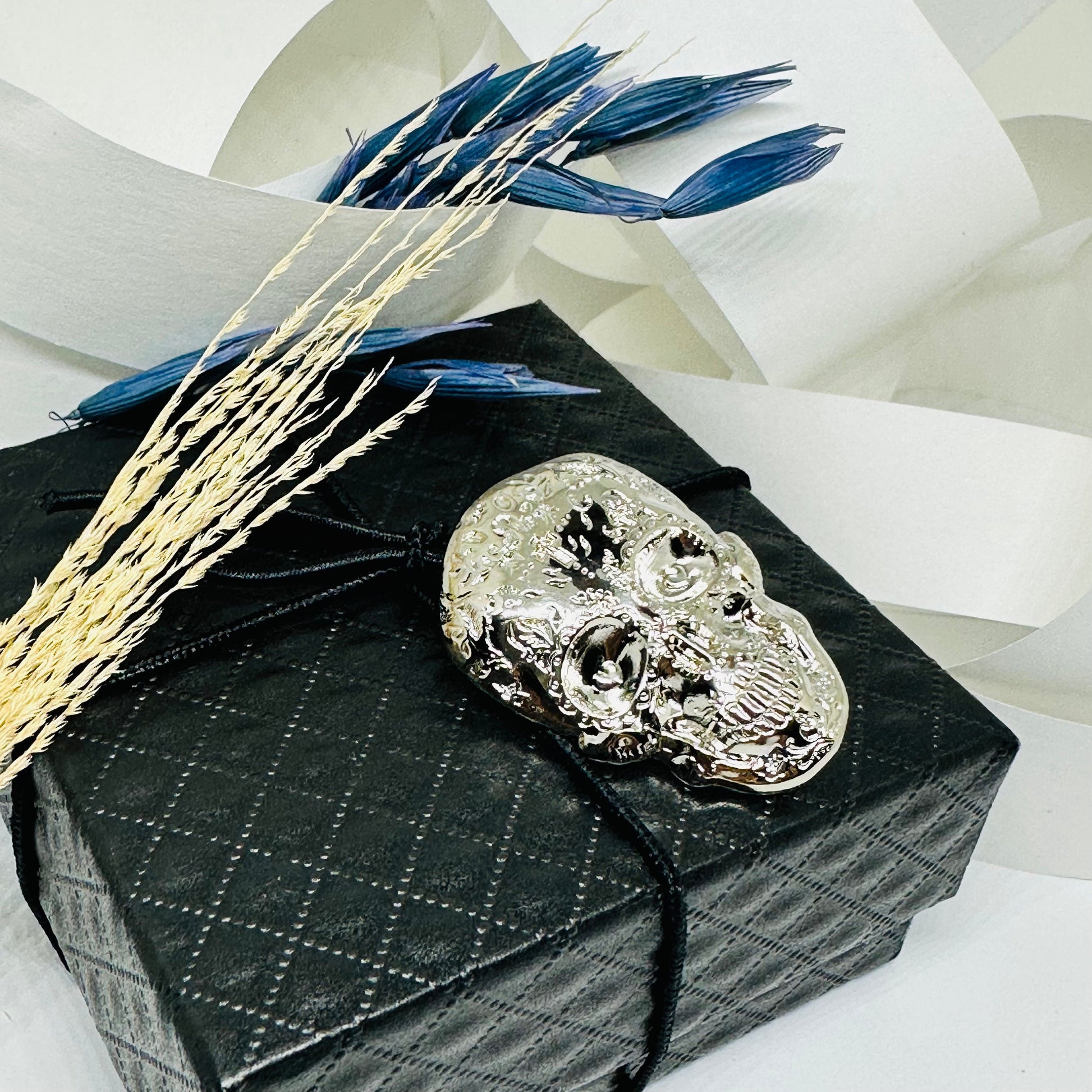 Sparkling Silver Chrome Sugar Skull Metallic Pin - Brooch