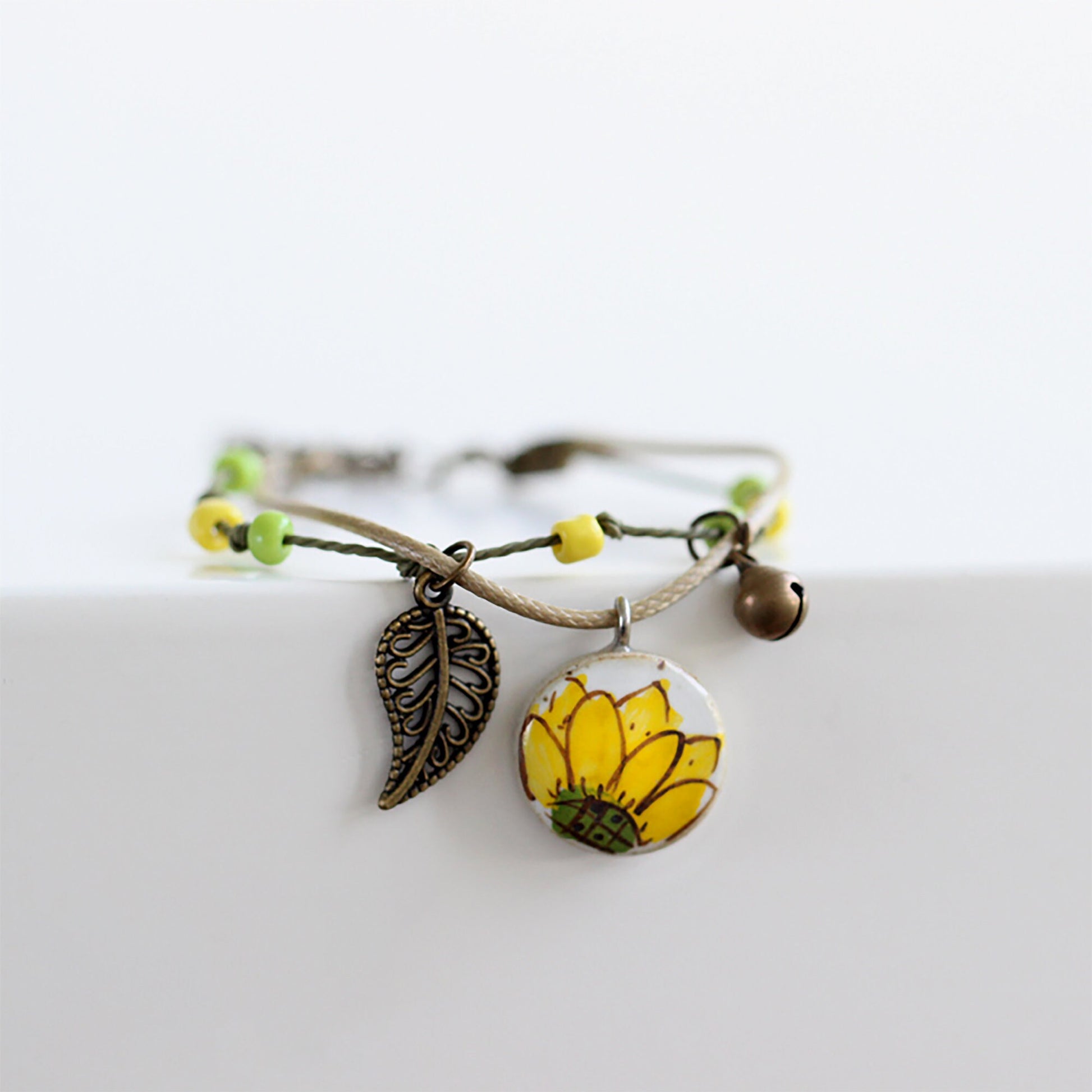 Get amazed by the beauty of this antique bronze Sunflower Clay Bracelet. Handmade and hand-painted with intricate details, this wearable art piece showcases the vibrant colors of Mexican ceramic jewelry. Its girasol design is perfect for those who value unique and one-of-a-kind accessories. Give the gift of creativity and joy to yourself or a loved one with this Brazalete Girasol Girl.