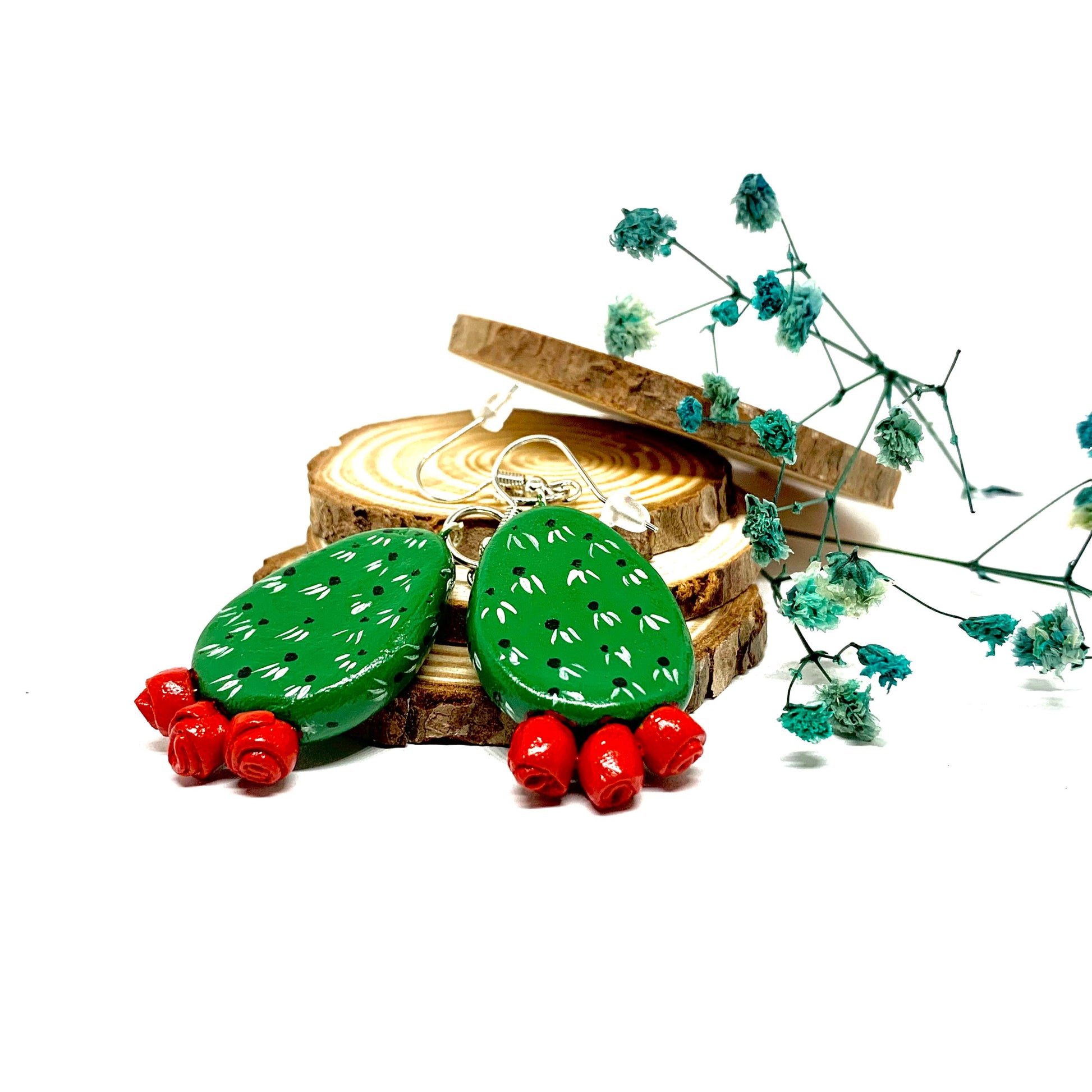 Get ready to be smitten by these adorable and delightful drop and dangle clay cactus earrings! Designed and handcrafted by skilled artisans. Earthy, extraordinary, and eye-catching. Chic and stunning Mexican nopal earrings. Traditional and modern styles combined to satisfy anyone looking for one-of-a-kind and unconventional pieces. CLAYWELRY™ Something fresh, original, and thrilling made just for you to love!